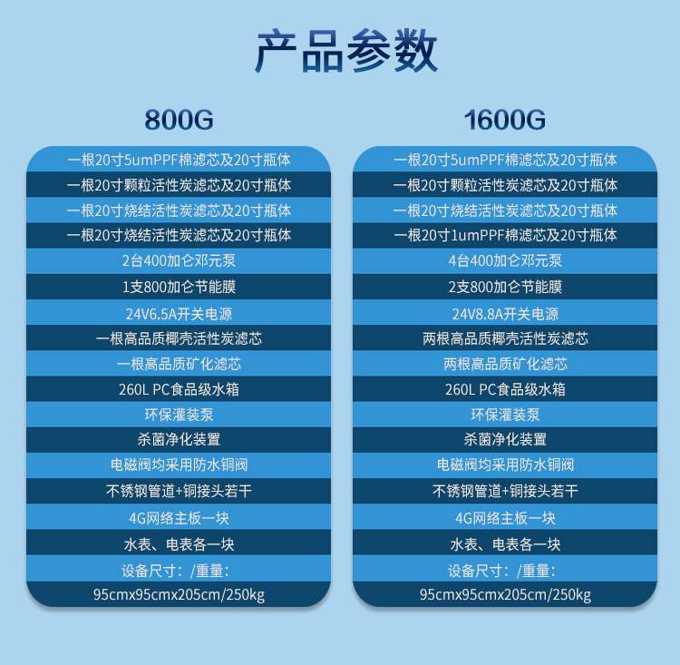 后還可以用,減少后期維護(hù)成本;電磁閥采用防水銅閥;灌裝泵采用潛水增壓泵,耐潮、耐腐蝕、使用壽命長(zhǎng)、更穩(wěn)定;電機(jī)采用美國(guó)進(jìn)口超靜音電機(jī),性能更穩(wěn)定、使用壽命更長(zhǎng),后置活性炭、能量礦化采用原裝夏威夷進(jìn)口濾芯