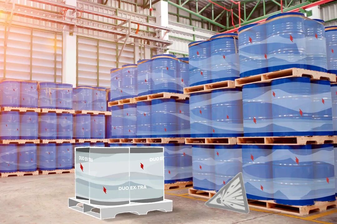 位于德國Lauterbach的薄膜制造商DUO PLAST AG公司的創(chuàng)新薄膜DUO EX-TRA配備了靜電消散聚合物Elastostat。這創(chuàng)造了第一個適合在潛在爆炸性環(huán)境中使用的拉伸薄膜。新開發(fā)的薄膜避免了靜電火花,因此,拉伸的托盤單元不再構(gòu)成爆炸危險。