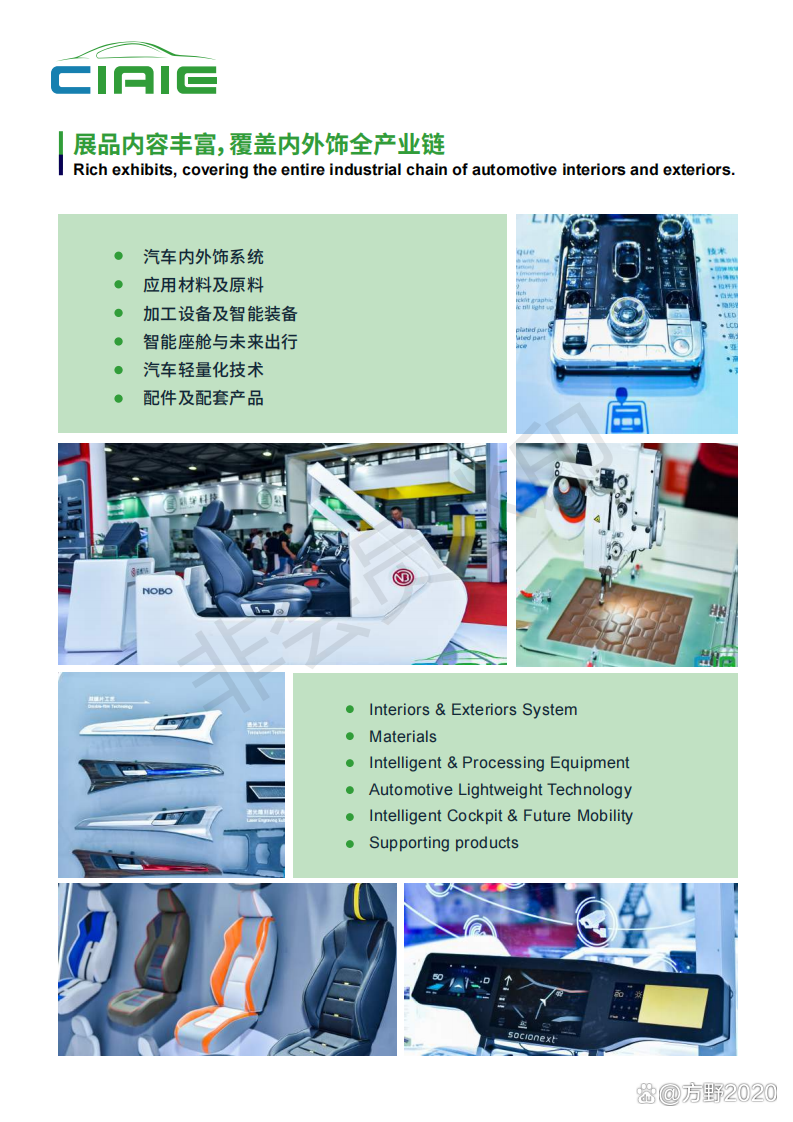 上海國際汽車內(nèi)飾與外飾展覽會CIAIE是按照國際化、專業(yè)化、市場化原則舉辦的唯一國家級汽車行業(yè)展會。上海國際汽車內(nèi)飾與外飾展覽會CIAIE已成為亞洲權(quán)威性最強(qiáng)、專業(yè)性最高、規(guī)模最大的汽車內(nèi)外飾行業(yè)專業(yè)展覽。 國內(nèi)卓越的汽車內(nèi)飾與外飾專業(yè)盛會。